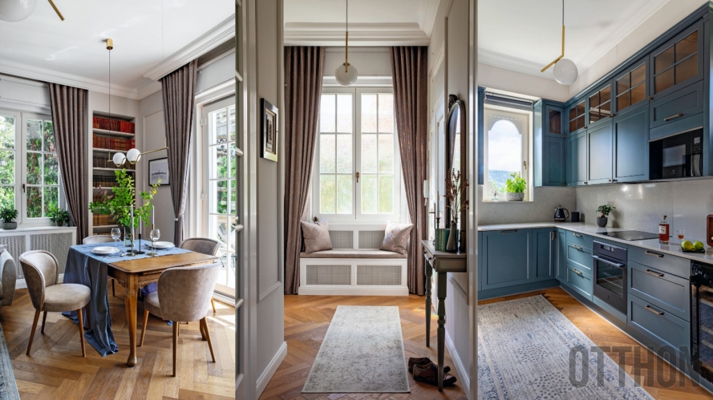 A művészetek, a design és a lakberendezés kedvelőjeként elszántan állt neki még külföldről levezényelni a valaha szebb napokat látott ingatlan átalakítását. Tiszteletben akarta tartani az építészeti adottságokat, emellett organikusan egymásból áramló, modern terekre vágyott, kortárs részletekkel, ezért több helyiség funkciót cserélt: a konyha a fürdő, a vécé a kamra helyére került. A szellős térérzetért elvetette a két hálós megoldást, helyette egy tágas hálószobát és egy kis dolgozót alakított ki.