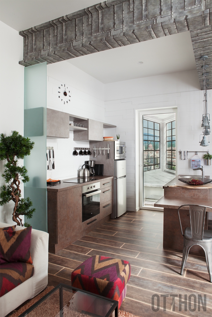Talán nem is gondolnánk, hogy ez az udvari lakás egykor egy sötét, barátságtalan hely volt, hiszen a terek optimális kihasználásának és a kreatív módon alkalmazott posztereknek köszönhetően mára Attila hívogató otthona. „Az egyik legfontosabb szempont az volt, hogy a tér növelése mellett olyan megoldások valósuljanak meg, amelyek lehetőséget teremtenek arra, hogy a lakás akár társbérletként, vagy később egy család induló otthonaként is funkcionáljon” – mesél a tervezés kihívásairól Faragó Juci. A térérzet növeléséhez fotókat és 3D tapétákat alkalmaztak, a nappali falán Amerika híres országútja, a 66-os út távolba futó aszfaltja remekül érvényesül és valósággal meghosszabbítja a teret. Ez a látványos digitális technológia lépett elő központi designelemmé, és minden szobában visszaköszön. Így például a nappalit és a konyhát vizuálisan elválasztó, épített álgerendán a tapéta szegecselt vasgerendára emlékeztet, a hálószoba falán felkúszó lapok pedig még a plafont is díszítik.
