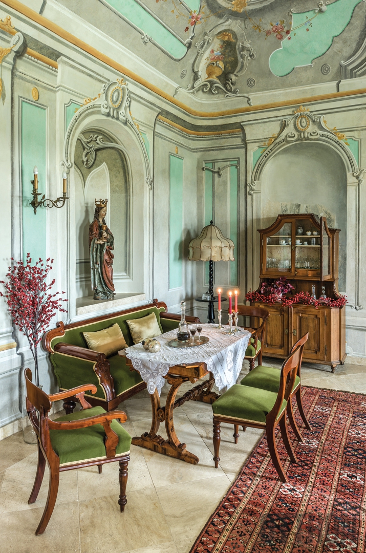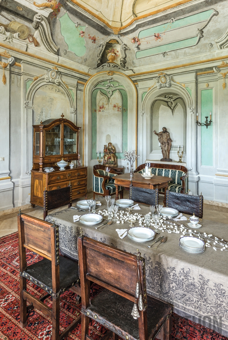 „A szalon nagy étkezőasztalára a férjem hosszú éveken át vágyott. Még akkor is, ha száz évvel idősebb, mint a kastély. A XVII. századi itáliai darab idén nyáron került hozzánk, és kényelmesen elfér mellette legkevesebb tizenkét ember” – utal Marietta arra, hogy ha négy gyermeke és a család összegyűlik az ünnepre, akkor bizony kell a hely. Kérdezem tőle, vajon ma mi tetszene a legjobban Csabának, aki 2012 januárjában hunyt el. „A reneszánsz étkezőasztal biztosan, de valószínűleg nagyon elégedett lenne a konyhában az új fűtőművel is. Anno a romos állapotban lévő házban csak sejtettük, hogy itt lehetett a konyha, mert találtunk egy nagy kéménykürtőt, zsíros, kormos lerakódással.