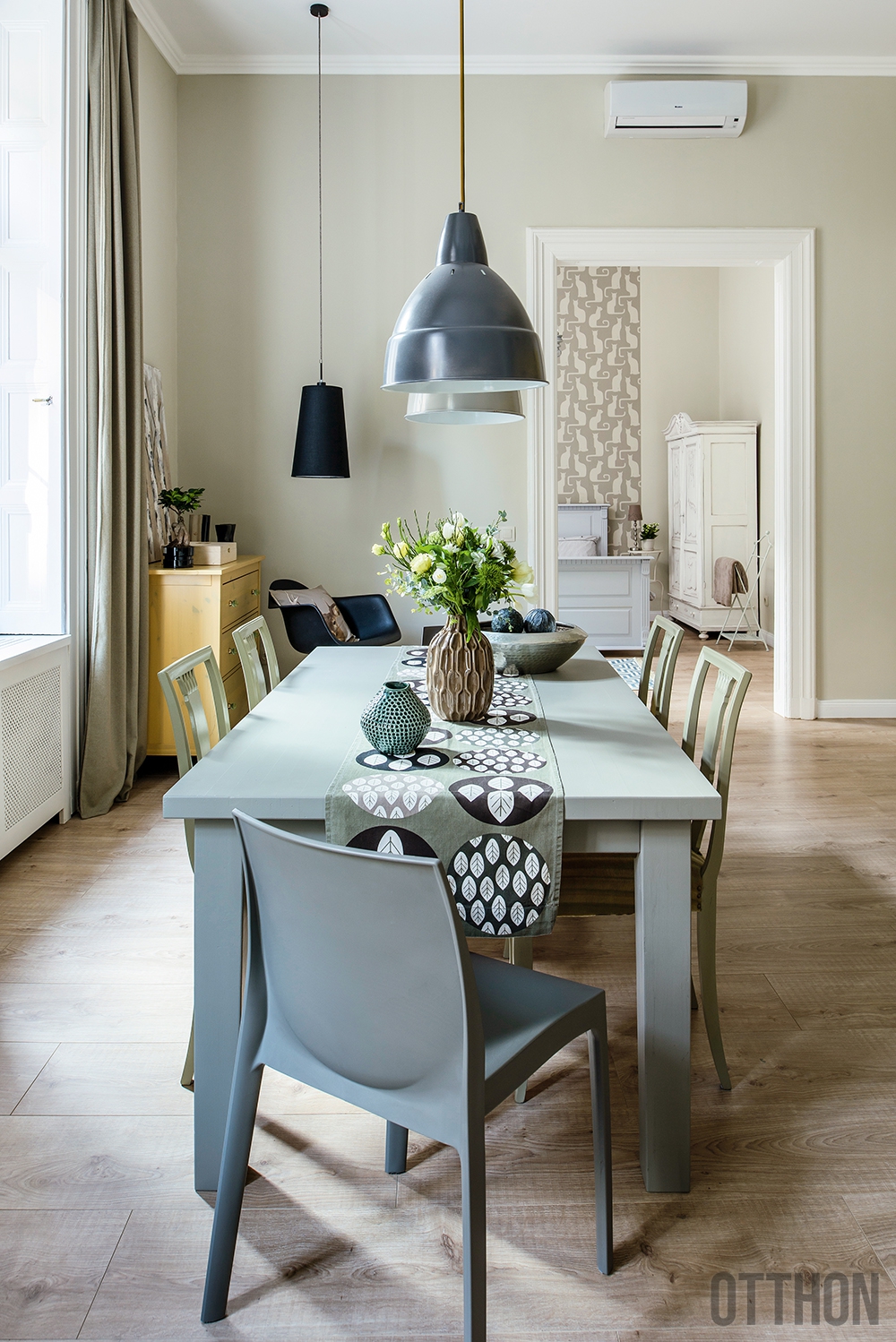 Mégis találtak közös nevezőt: a lakás eredeti építészeti elemeinek megmentésében mindketten feltétlenül egyetértettek. Így nem volt kérdés, hogy felújíttatják a régi spalettákat és megőrzik a boltíves átjárót. A közös nagy kedvenc pedig az előtér orgonasípos konzolasztala lett, amire ugyan Michelle bukkant rá egy használt cikkeket kínáló portálon, de a férjnek is azonnal megtetszett. „Csak a szállítás jelentett gondot, a bútor ugyanis olyan nehéz volt, hogy a sétálóutcán át a lakás bejáratáig három turista segítségével tudtuk elhozni” – meséli Michelle. A viszontagságos út után azonban nemcsak ez a különleges bútor találta meg azonnal a helyét, de Michelle és férje is az első pillanattól kezdve otthonosan érezték magukat a lakásban.