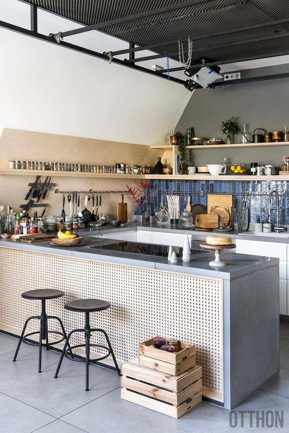 „A konyhám kialakításánál fontos szempont volt, hogy ne legyen tévéstúdió hangulata. Akár a saját konyhámban is állhatnék” – vallja. – „Itt minden fiók, amit kihúzok, olyan eszközökkel van tele, amiket tényleg használok. Jó ebben a térben mozogni, minden kézre esik, elérem a sütőt, kényelmes a pult, mindennek van helye. Szerintem a konyha egyik legfontosabb része egyébként is a pult. Érdemes rá költeni, igazi kényelmi faktor és fontos, hogy betöltse a funkcióját: bírja a strapát, a magas hőt, legyen könnyen tisztítható. A karcos, foltos pult soha nem zavart, nekem azt mutatja, hogy használom, időt töltök a konyhában, és ez meglátszik rajta.”